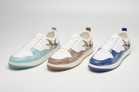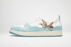 设计灵感来源于雁荡山和瓯绣文化,将温州本土特有的自然景观、非遗传统工艺品与生态皮革鞋面材料完美结合。