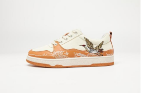 配色以褐色、米黄和豆沙色为主,鞋面材质选用生态皮革,整体风格呈现典雅、大气的东方意蕴。