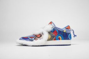 鞋面主要采用生态皮革,运用刺绣工艺,并搭配毛绒材料,将在现代审美的时尚设计中注入了传统文化的源流。