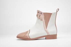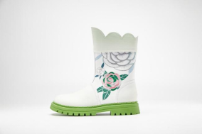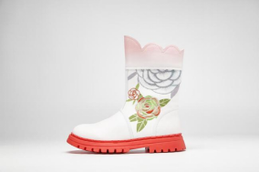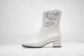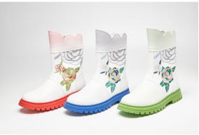 瓯绣主题系列鞋款的设计灵感来源于非遗·瓯绣。以精美的传统民间刺绣工艺勾勒中华民族传统文化元素,如名花、舞狮纹饰、凤凰图腾、温州本土自然景观,独具东瓯地域特色。针法严谨而多变,色彩绚丽,绣面光亮,鞋履整体造型融诗文、书画、刺绣为一体,东方之美主题突出,鞋身选择柔软的生态羊皮,兼顾了时尚设计感和功能舒适度、绿色环保性,符合当下消费市场的审美追求和穿用需求。