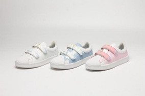 蓝色、粉色、白色为主的三款配色对应了孩童不同的个性特征和服饰搭配需求。
