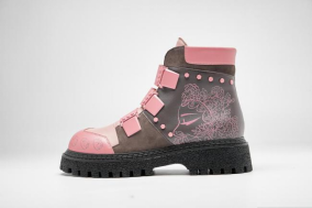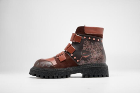 结合当下流行的户外风格工装靴和国家非物质文化遗产(温州)蓝夹缬及竹丝镶嵌技艺,