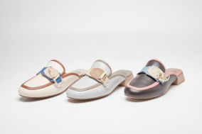 运用现代装饰工艺再现传统贝雕,生态柔软羊皮、粗花呢面料等材质的选用和搭配为经典鞋型“复兴”锦上添花。
