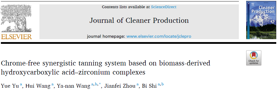 四川大学石碧院士、王亚楠教授课题组J Clean Prod: 基于生物质衍生的羟基羧酸-锆配合物的无铬协同鞣制体系