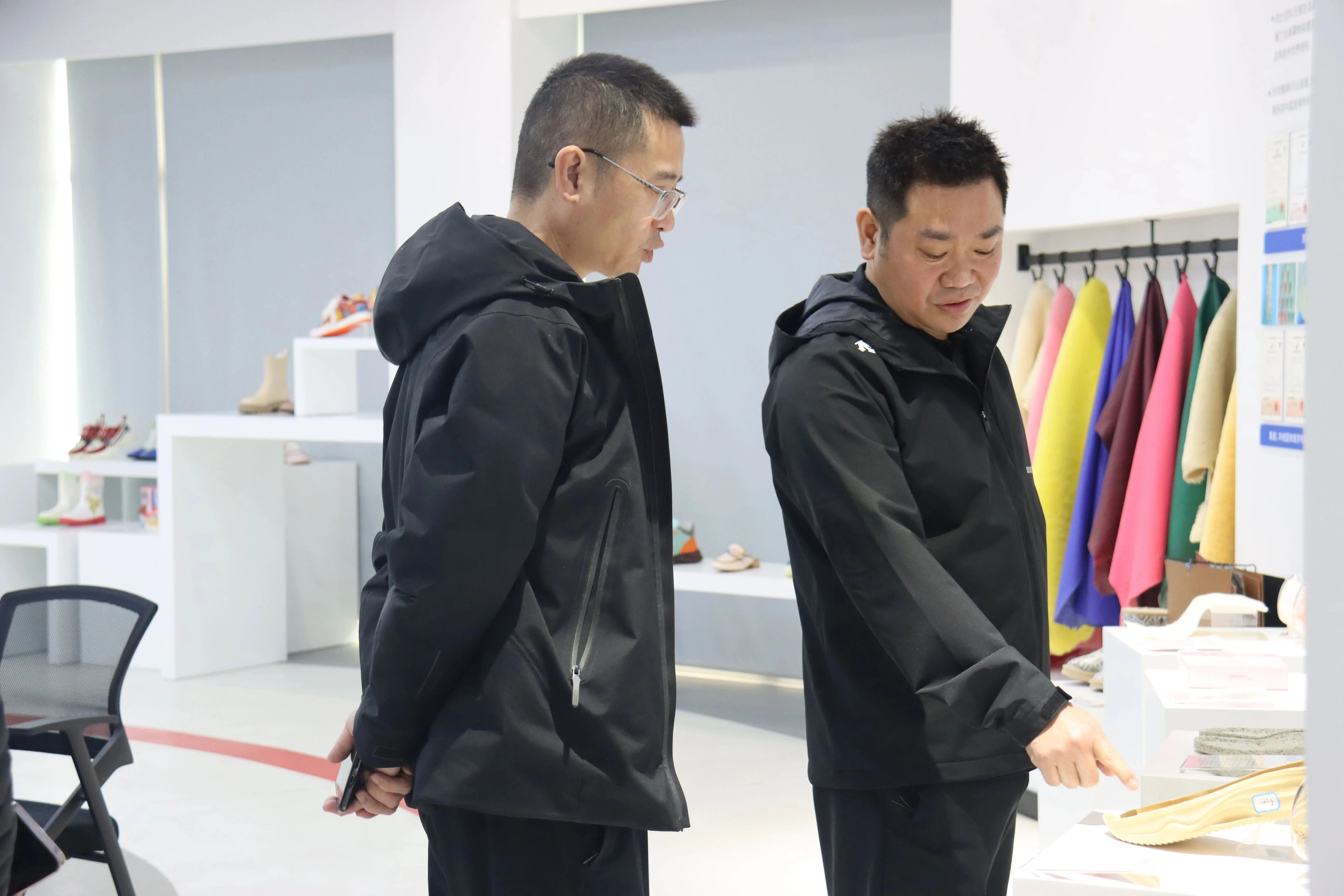 孙祥光局长一行实地察看鞋时尚创新中心、工业互联网智能制造中心、碳中和新材料中心,深入实验室详细了解科技创新实践成果,重点关注人工智能与鞋革产业深度融合的进展成效。毕东亮围绕AI 辅助鞋履设计、智能制造产线优化、绿色材料智能研发等方向,汇报了研究院在关键技术攻关、成果转化应用及服务企业数字化转型等方面的阶段性成果。